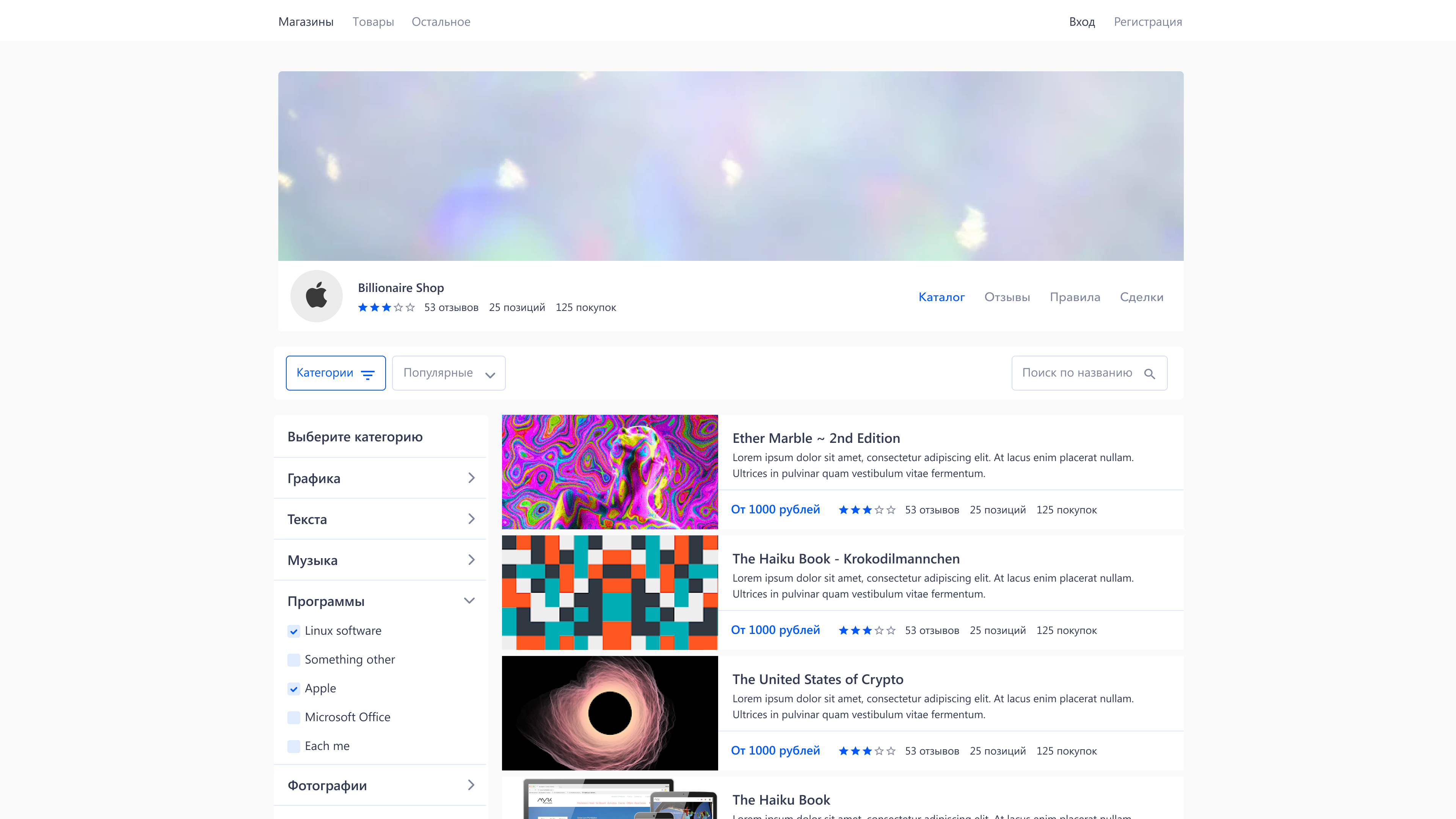 It is a platform with a main objective to help people to sell any goods starting with pictures and finishing with a code in a digital way faster and easier. Unlike a simple marketplace, each user has an opportunity to create their own full-fledged store page, add their own logo, background, create sections for products, categories and subcategories. There is a secure deal system with a possibility to send a quick request to support any issues. Also, you have access to chat for communications with a store, view reviews, detailed product search and wholesale purchase request system.