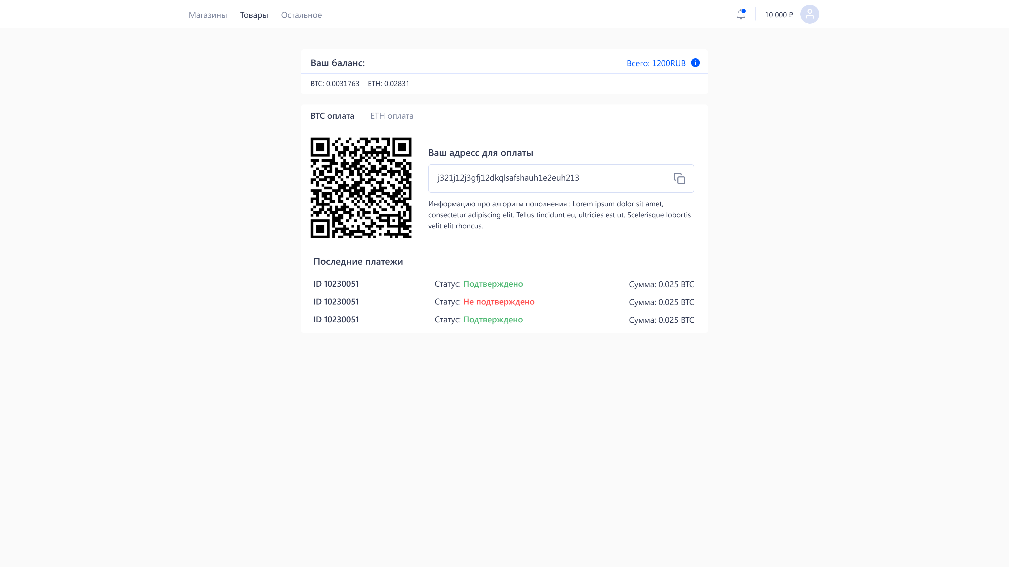 The ability to pay with cryptocurrency is implemented on a par with regular currency. In addition, our own payment system for replenishment of well-known cryptocurrencies and exchange into other currencies within the site has been created too.