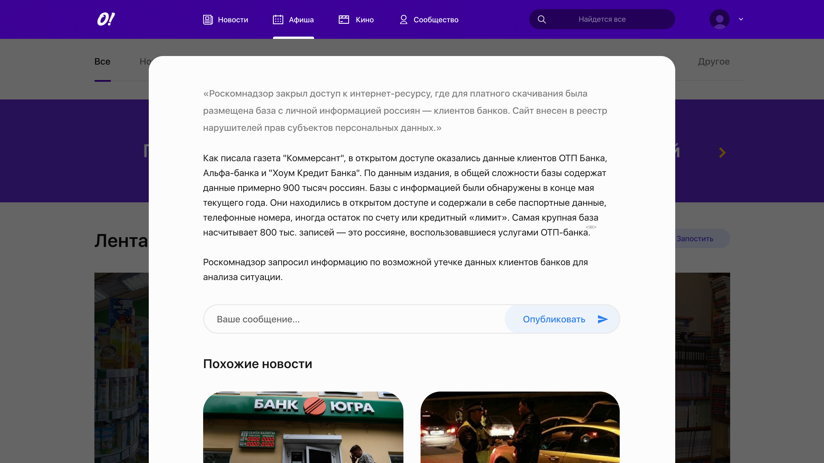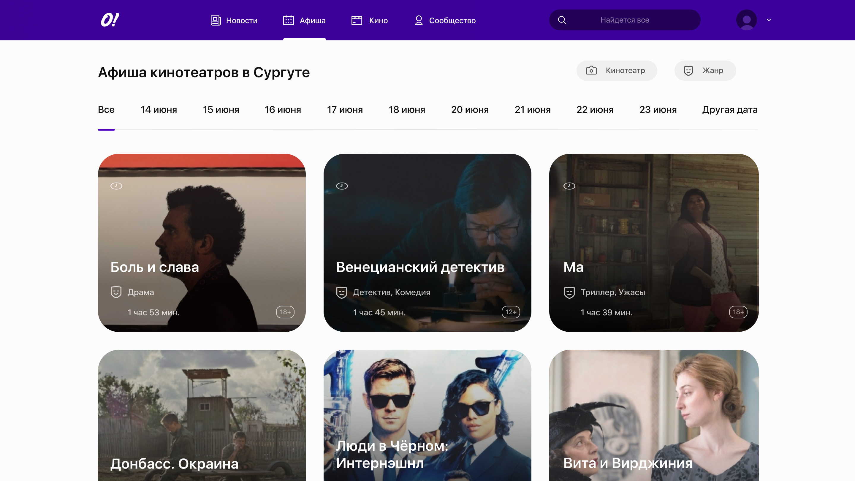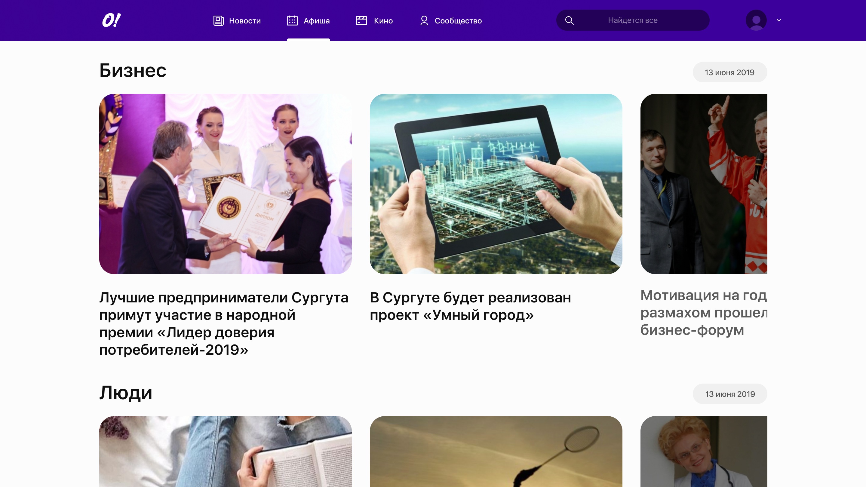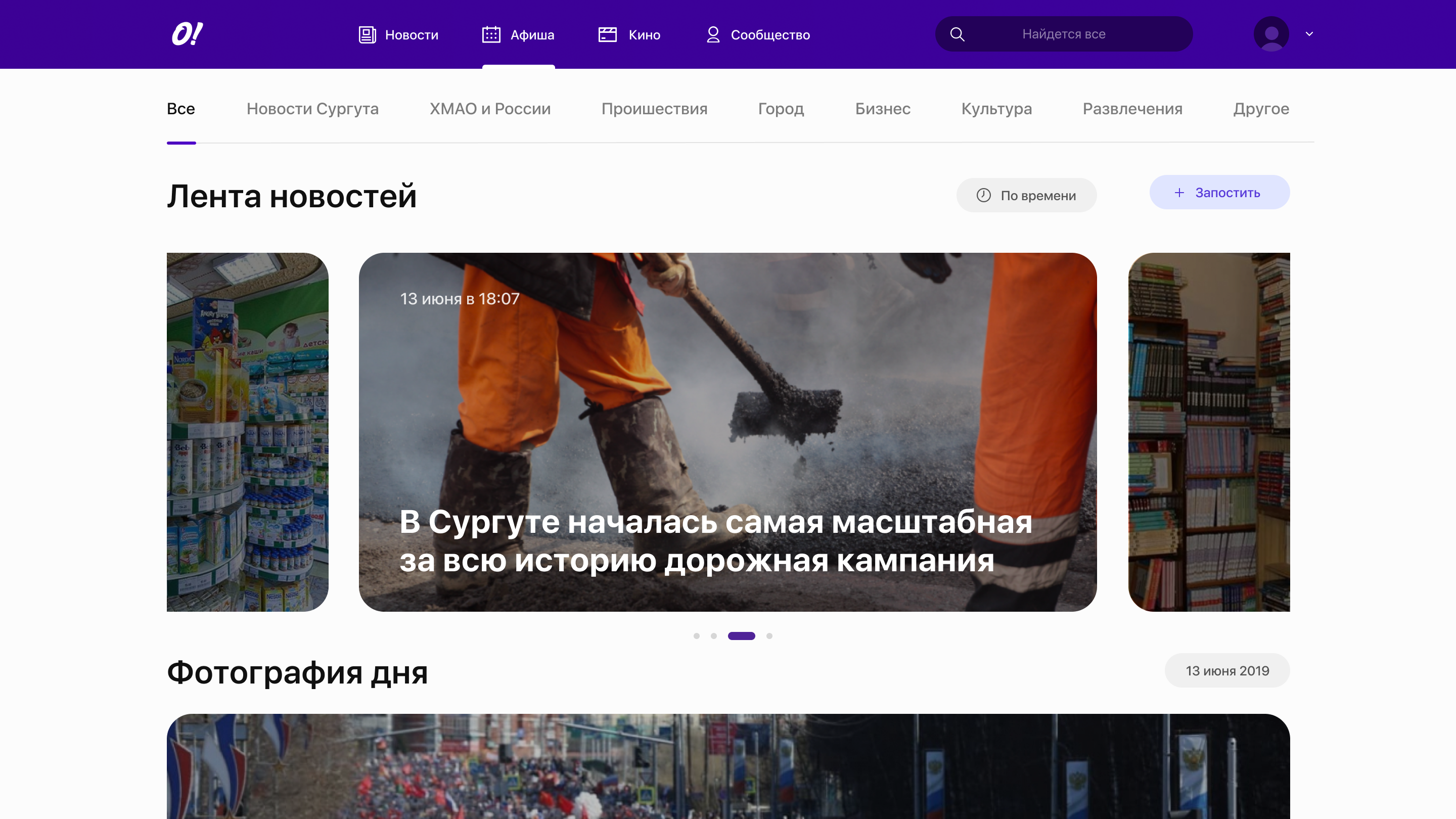 City newspaper platform. The site contains the latest news of the city and the whole world. There is also a page with actual posters of events throughout the city and a separate list of movie announcements in the best cinemas of the city.