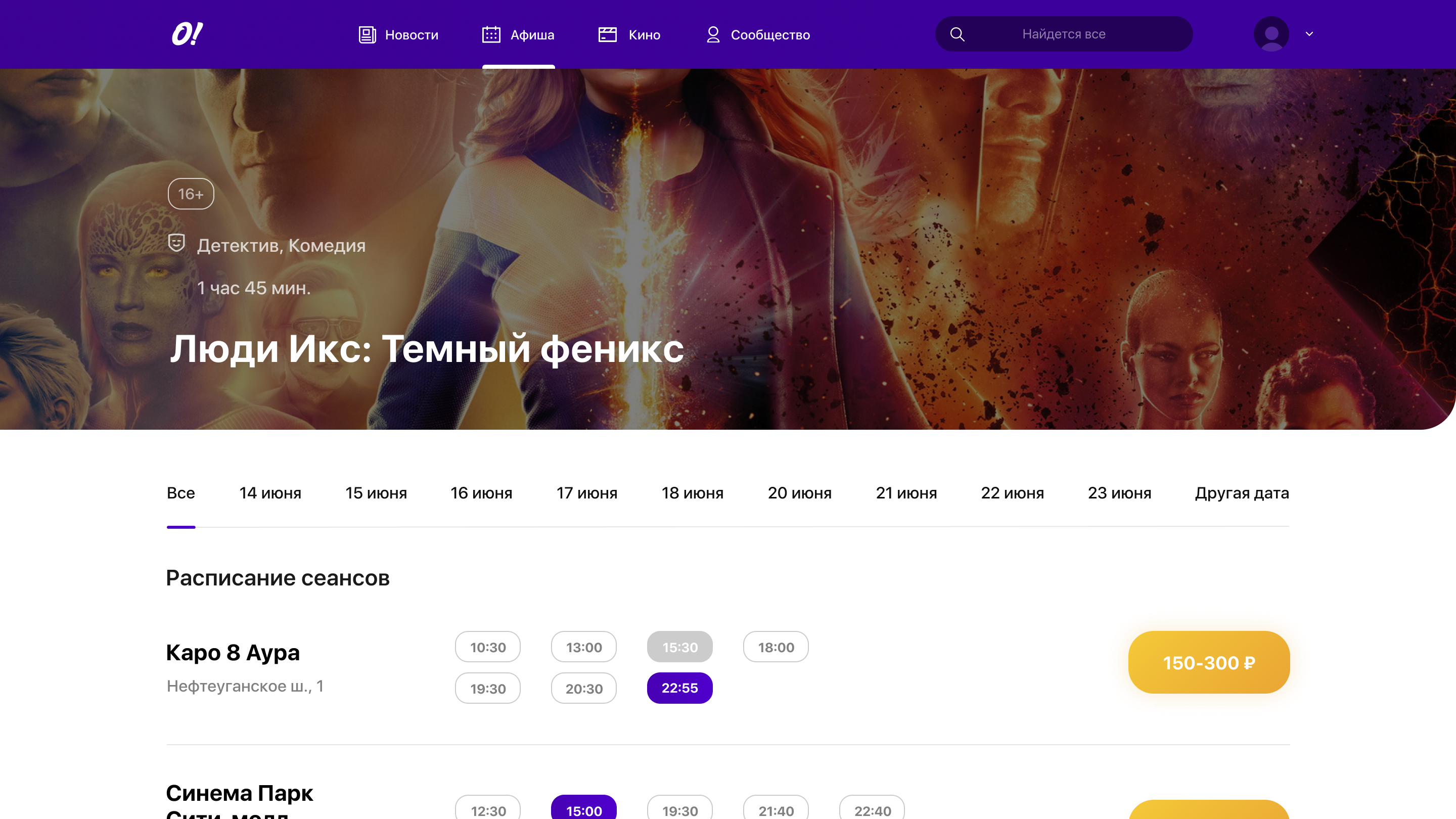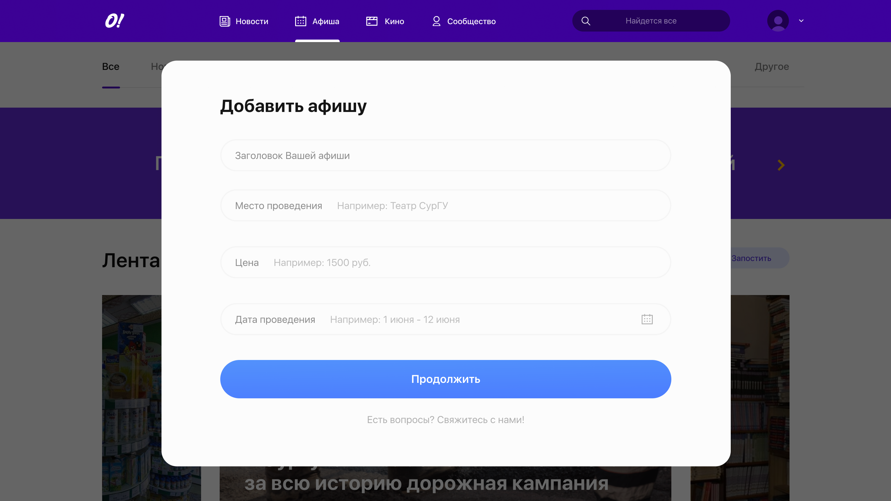 A list of up-to-date event posters with detailed information, session date and price is developed. Also, any user can offer their own poster, which will be published after moderation.